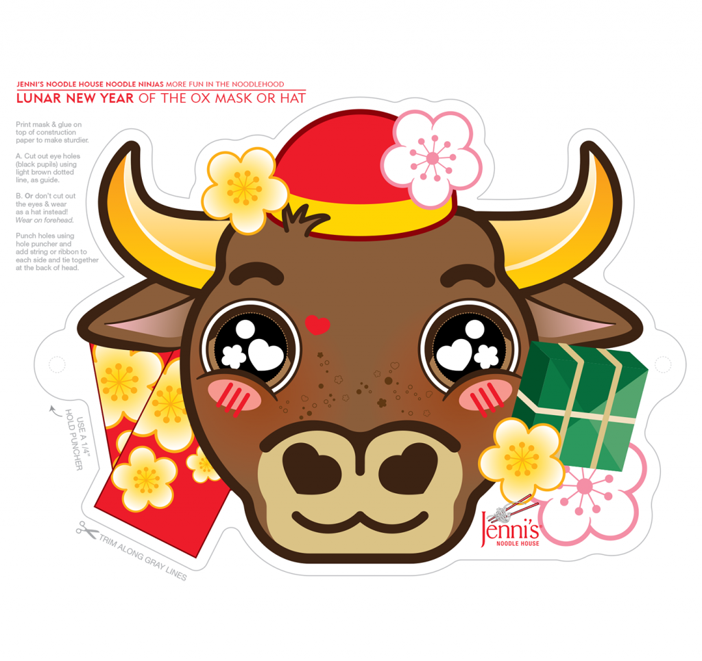 Instagram Stories illustration 2021, Year of the Ox Red Envelope craft for all the young fans of Jenni’s Noodle House known as “Noodle Ninjas.” Was previously available for download from the company’s website.A fun little Ox hat craft celebrating the Year of the Ox, 2021. Made available as a download for kids to make. All the illustrations are original designs of Katsola.